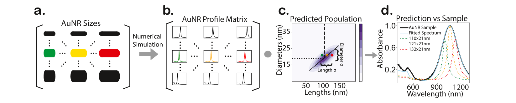 The raw material is a bag of simulated spectra for gold nanorods (AuNRs) with varying aspect ratios and dimensions. The authors assume that the particles dimensions follow a Gaussian distribution. The observed spectrum is then reconstructed sum of spectra of individual particles. There is no learning involved, just physics and math.